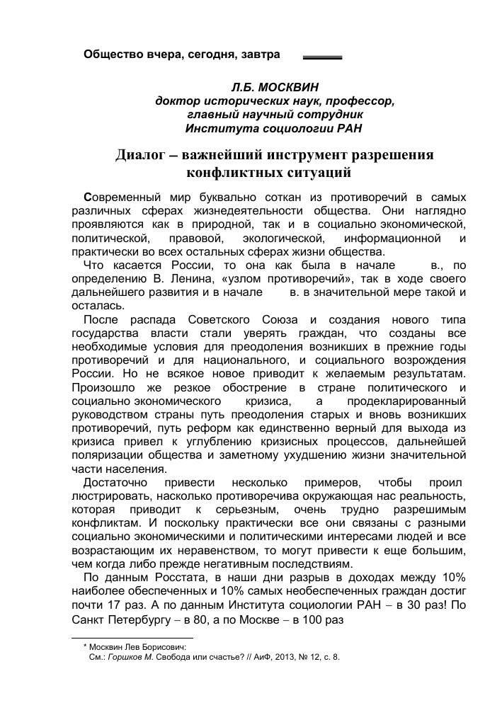 Необходимость диалога и поиска компромиссных решений